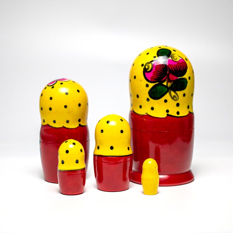 Polkhov-Maydan handmade set of 5 matryoshka nesting dolls.
