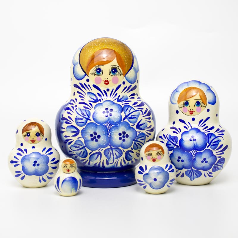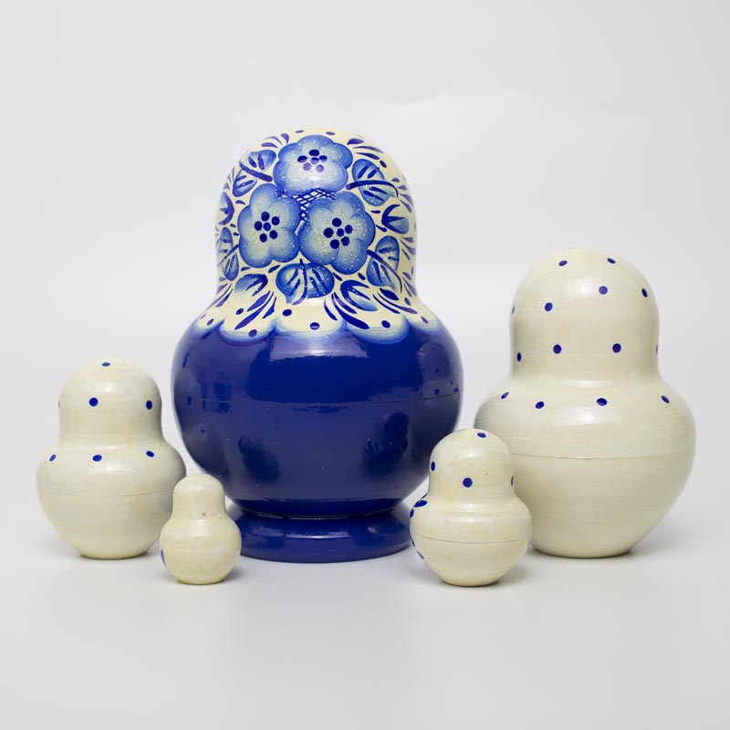 Genuine handmade set of 5 matryoshka nesting dolls.